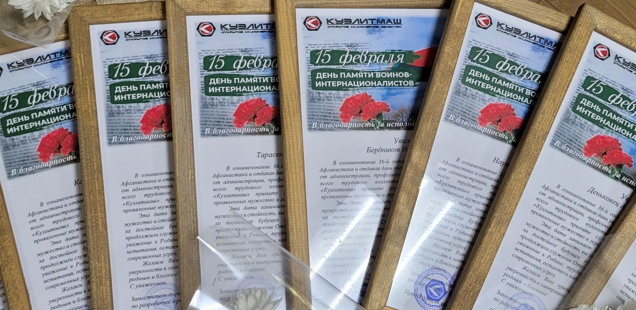 По случаю 36-й годовщины вывода советских войск из Афганистана воинам-интернационалистам вручены благодарственные письма, цветы, выплачено денежное вознаграждение в соответствии с коллективным договором, а завтра 15 февраля все они примут участие в городских мероприятиях, приуроченных этой дате.