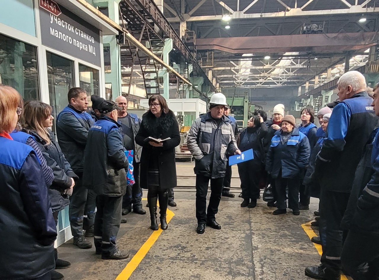 На фото: в отделе главного механика с тематикой ЕДИ знакомят заместитель директора по организации производства С.М. Янчарук и председатель профкома А.М. Шевердина, в механическом цехе – помощник директора по режиму и экономической безопасности О.А. Воробьев и главный бухгалтер В.Л. Рубан.