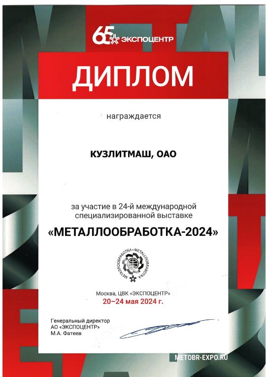 КУЗЛИТМАШ на 24-ой международной специализированной выставке "Металлообработка-2024"