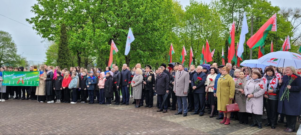 Память погибших воинов-освободителей города Пинска участники митинга почтили минутой молчания. К Братской могиле воинов-освободителей в знак уважения и благодарности были возложены живые цветы.