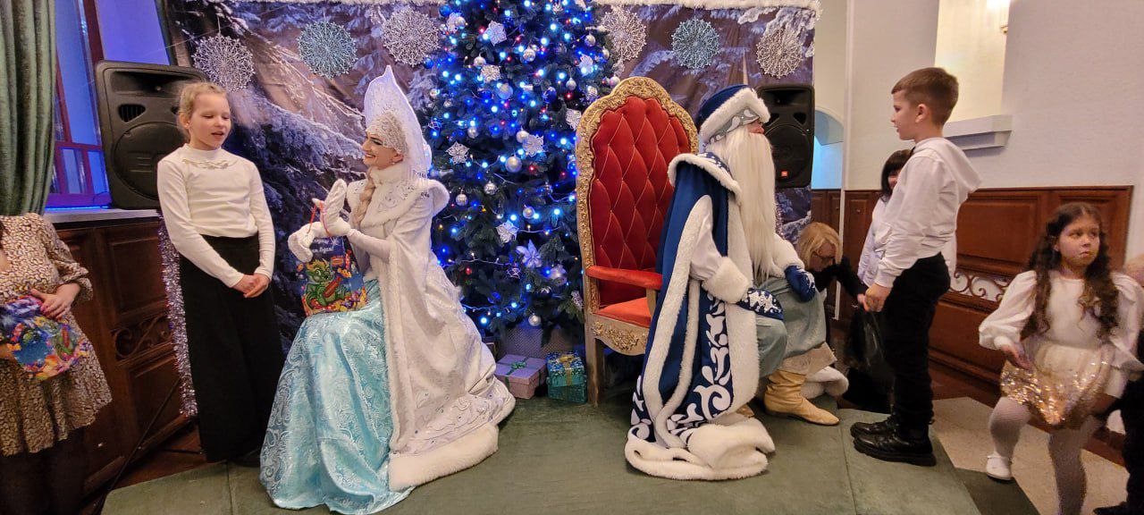 Дед Мороз и Снегурочка пообщались с каждым ребенком и вручили сладкие подарки.