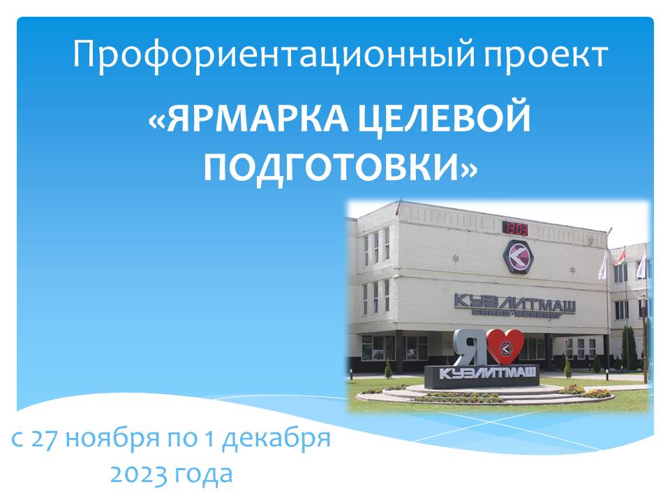 В рамках ярмарки будущие специалисты смогут посетить как производственную базу ОАО "Кузлитмаш" , так и ознакомиться с базой учреждений образования. Профориентационный проект- это отличная возможность узнать основные аспекты заключения целевых договоров и познакомиться с историей и спецификой работы ОАО "Кузлитмаш".