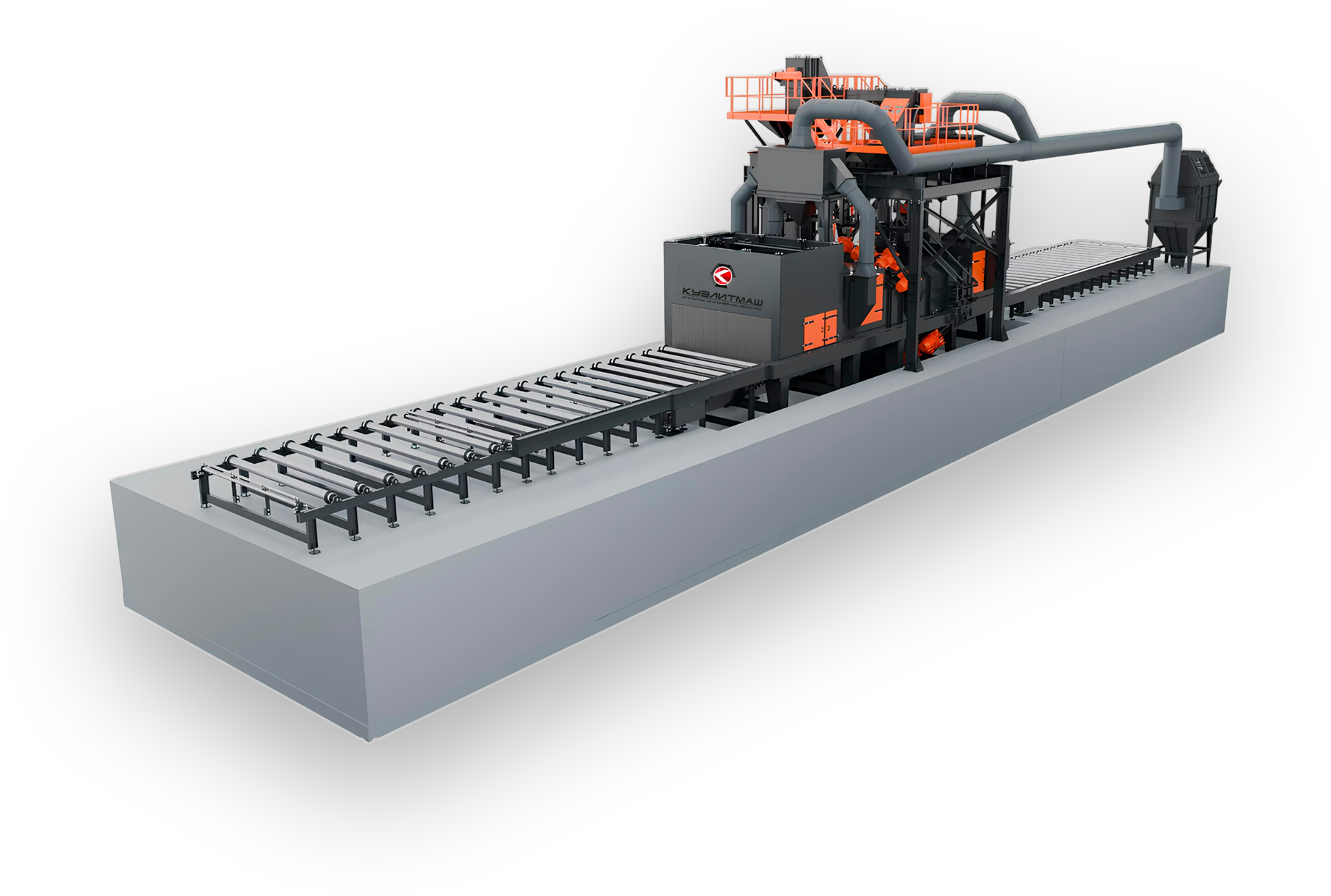 Проходная дробемётная установка предназначена для высокоэффективной очистки металлических изделий и конструкций в поточном режиме.