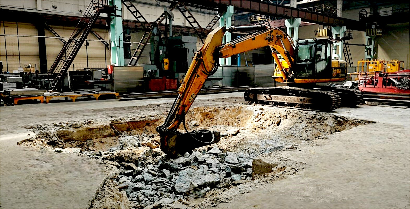 Полным ходом ведутся работы по устройству фундамента под вертикальный обрабатывающий центр, ввод в эксплуатацию, которого позволит расширить технологические возможности обработки деталей и узлов кузнечно-прессового оборудования.